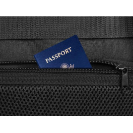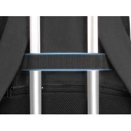 Konstrukcja paska na bagaż pozwala na przymocowanie plecaka biznesowego do bagażu, uwalniając ramiona.