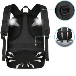 • Wbudowane gniazdo USB do ładowania na zewnątrz oraz kabel USB do ładowania wewnątrz plecaka
